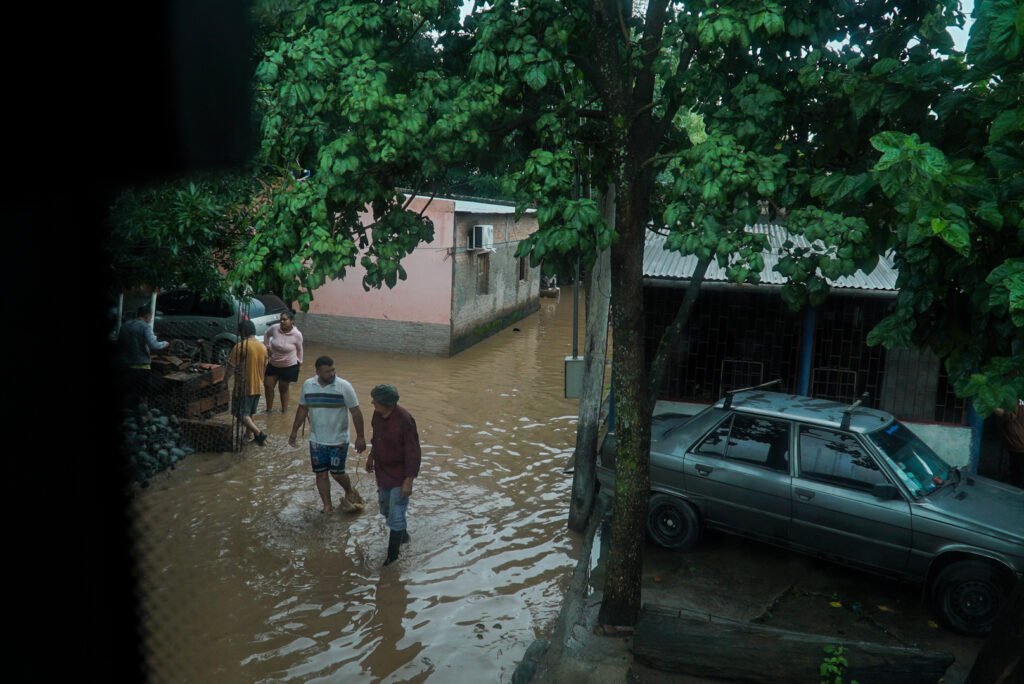La fuerte tormenta de afuera empieza a menguar, aunque el cielo mantiene una oscuridad apocalíptica. Es la tercera jornada completa de lluvias en la provincia; en solo veinticuatro horas cayó más agua de la que suele caer en un mes. Hay varias rutas provinciales cortadas, incluso destruidas. El colectivo se desvía y atraviesa la localidad de Manuel García Fernández. Al retomar una ruta transitable, el paisaje, normalmente sojero, se revela mutado en laguna. «Se quejaban de la sequía, vea ese campo cómo ha quedao», «Ni un fruto le va a dar el sembradío», resuena en el pasillo del colectivo.
