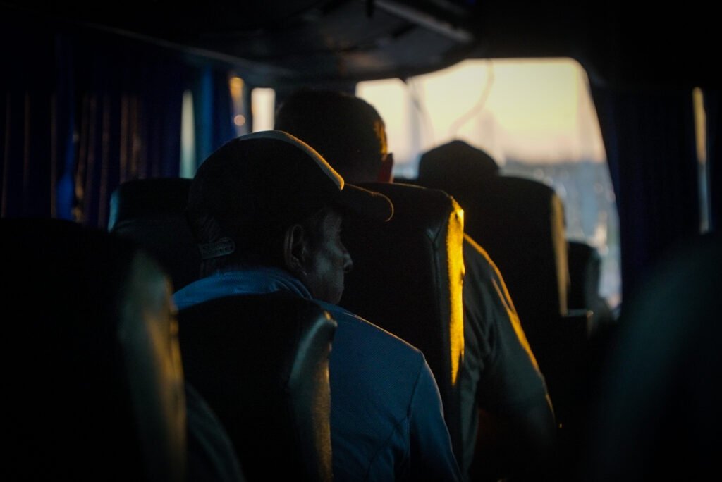 En este colectivo todo se comparte: las galletitas, el agua, los sanguchitos, las colchas, la coca pa’l acusi, las risas, los cargadores, las penas y la bronca. Contra el chofer, la policía y la gente que no mira a los ojos. En el piso de arriba, al fondo, viaja una familia con un niño, entre bultos y colchas atadas con soguitas. La escena se repite en otros colectivos. Las infancias que se criaron entre el abrazo afectivo de las jornaleras arrancan ahora su rito de paso, un viaje de iniciación a través de nuevos climas y paisajes extraños.