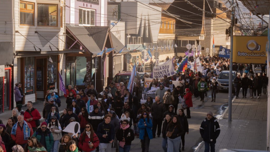 En el extremo sur, la memoria es indisociable de la soberanía. El documento subrayó que defender la memoria es también defender el territorio y la independencia: «Las Malvinas fueron, son y serán argentinas, y no aceptamos la entrega ni el sometimiento a intereses extranjeros». La defensa del Atlántico Sur se vinculó directamente con la resistencia a la desindustrialización que hoy golpea a la provincia, expresando una solidaridad firme con los trabajadores y trabajadoras de Aires del Sur, Sueño Fueguino y la Cooperativa Renacer.